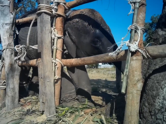 اس ویڈیو میں ہاتھیوں کو اپنی ماں سے الگ ہوتے اور چیختے ہوئے دیکھا جا سکتا ہے۔ اس عمل کے دوران انہیں رسیوں سے باندھ کر لوہے کے ہکس اور نوکیلی لکڑیوں سے کچوکے بھی لگائے جا رہے ہیں۔