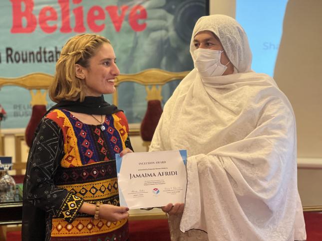جمائمہ آفریدی کا کہنا ہے کہ ’اصل میں مجھے یوتھ امپیکٹ ایوارڈ ملا ہے یہ جو بین الاقوامی مذہبی آزادی کا سمٹ ہے جو واشنگٹن ڈی سی میں ہوا تھا۔‘