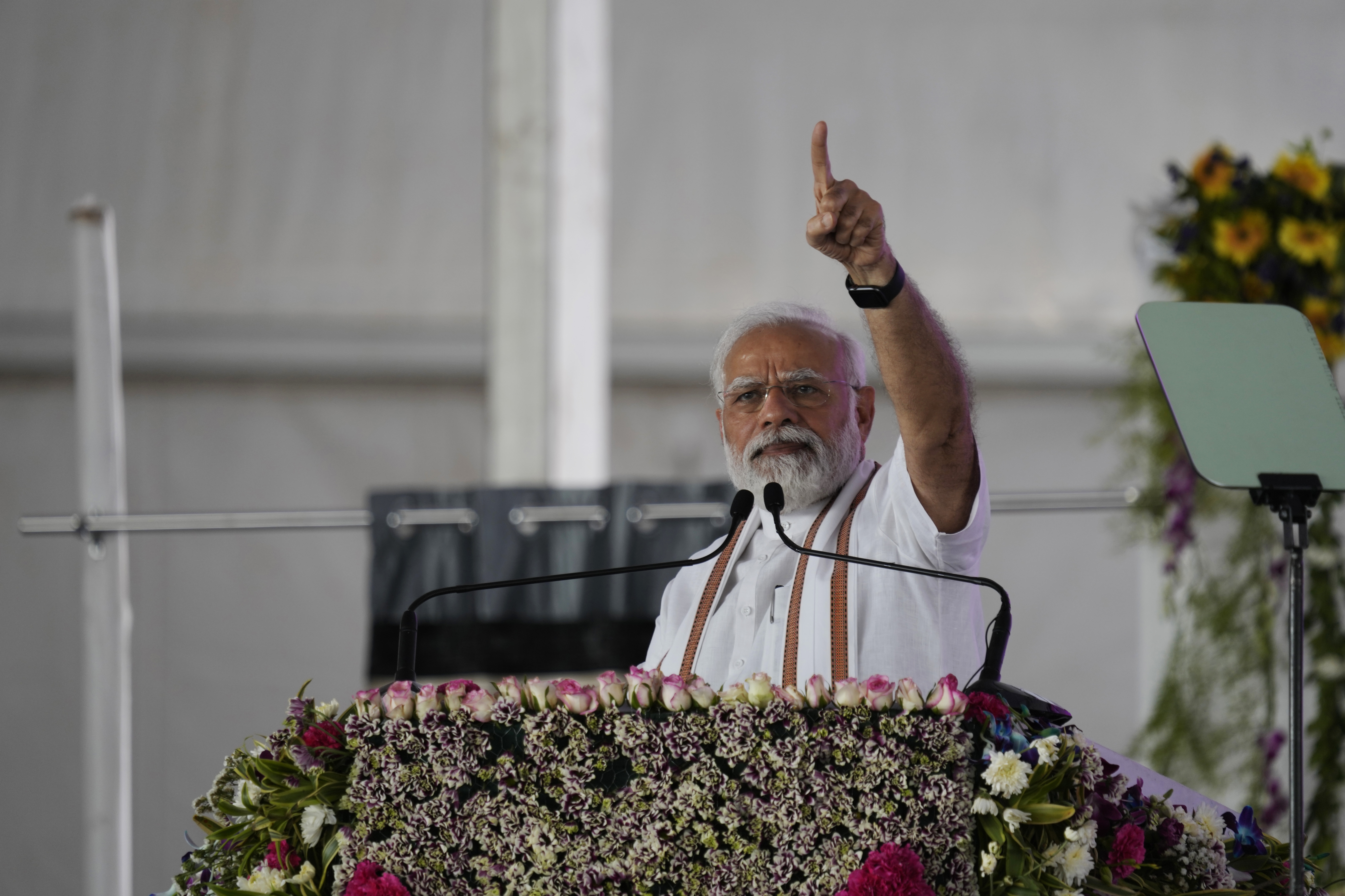 آج وزیراعظم نریندر مودی نے سخت سکیورٹی میں نئے منصوبوں کا افتتاح تو ضرور کیا، تاہم خبر رساں ادارے ایسوسی ایٹڈ پریس کے مطابق انہوں نے کسی سیاسی وعدے سے گریز کیا۔