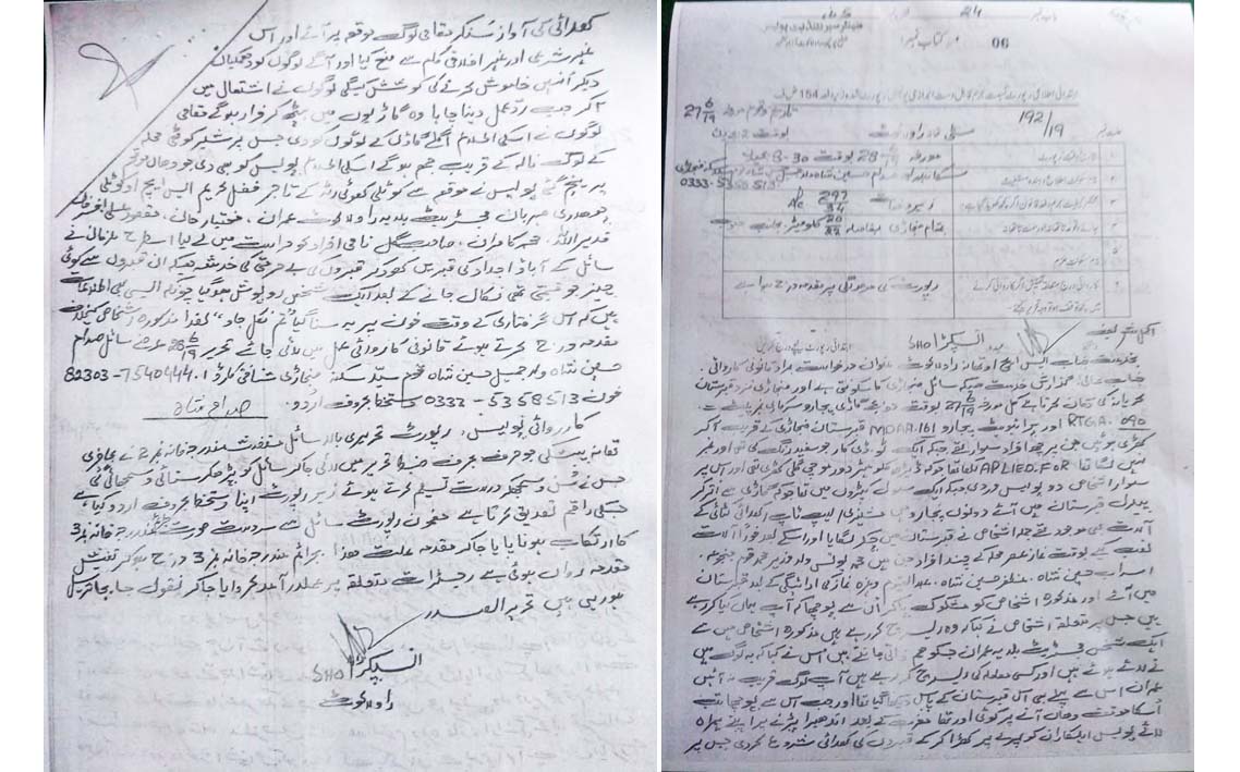 تھانہ سٹی راولاکوٹ میں منجاڑی گاؤں کے رہائشی صدام حسین شاہ کی مدعیت میں درج ایف آئی آر میں نو افراد کو نامزد کیا گیا تھا، جن میں میونسپل کارپوریشن راولاکوٹ کے مجسٹریٹ سردار عمران، کوٹلی پولیس کے ایس ایچ او چوہدری مہربان اور کھوئی رٹہ کے ایک تاجر فضل کریم کے علاوہ خیبر پختونخوا کے مختلف علاقوں سے تعلق رکھنے والے مختار خان، مقصود علی، افسرخان، قدیر اللہ، محمد کامران اور صاحب گل شامل ہیں۔