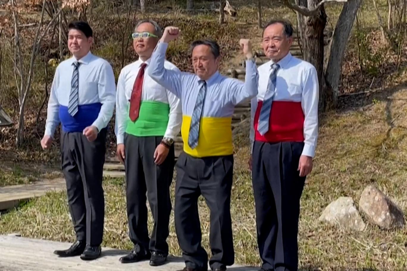 شرٹ، ٹائی اور رنگین کمر بند پہنے مزاحیہ انداز میں ڈانس مووز کرتے 50 سے 60 سال کی عمر کے چار مرد جاپان میں ٹک ٹاک سٹار بن گئے ہیں۔