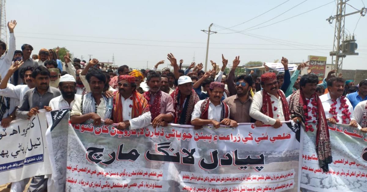 مارچ میں شریک ایک اور سماجی کارکن ذوہیب احمد نے بتایا 1991 کے پانی معاہدے کے تحت ڈاؤن سٹریم کوٹری میں کم سے کم 10 ملین ایکڑ فٹ (ایم اے ایف) پانی چھوڑنا ضروری ہے جبکہ ضرورت 35 ایم اے ایف کی ہے۔