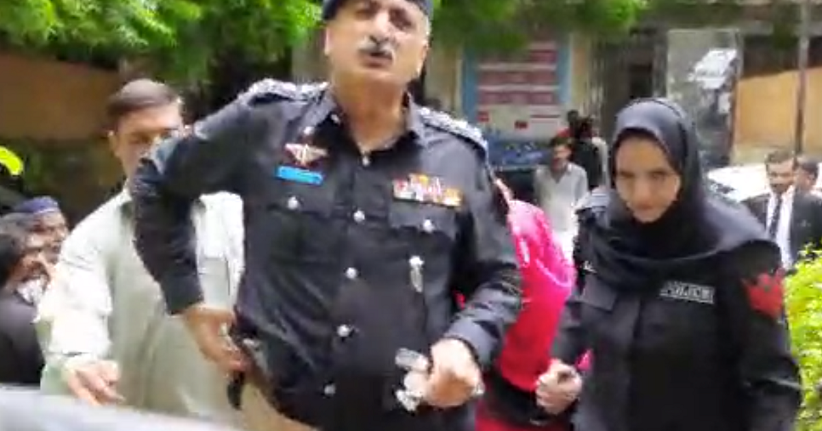 دعا زہرا کو بدھ کے روز عدالت میں پیش کرنے کے دوران کیس کے تفتیشی افسر سعید رند نے کوریج کے لیے آنے والے صحافیوں پر سرکاری پستول تان لیا۔