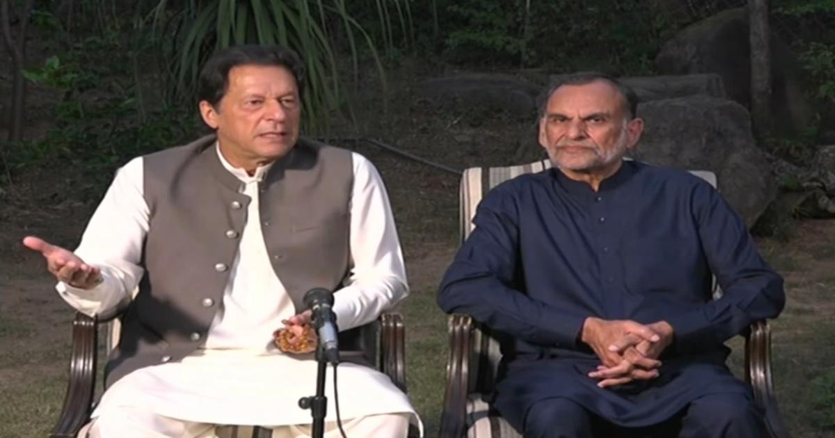 اپنی گرفتاری سے متعلق سوال پر عمران خان کا کہنا تھا کہ ’اگر یہ مجھے پکڑ لیں گے تو کیا لانگ مارچ نہیں ہو گا؟ ہم منظم طریقے سے احتجاج کرتے ہیں۔ کیا یہ چاہتے ہیں کہ احتجاج منظم ہو یا پاکستان سری لنکا جیسے حالات کی طرف چلا جائے؟ یہ احتجاج کا راستہ روکیں گے تو ملک بند ہو جائے گا۔‘
