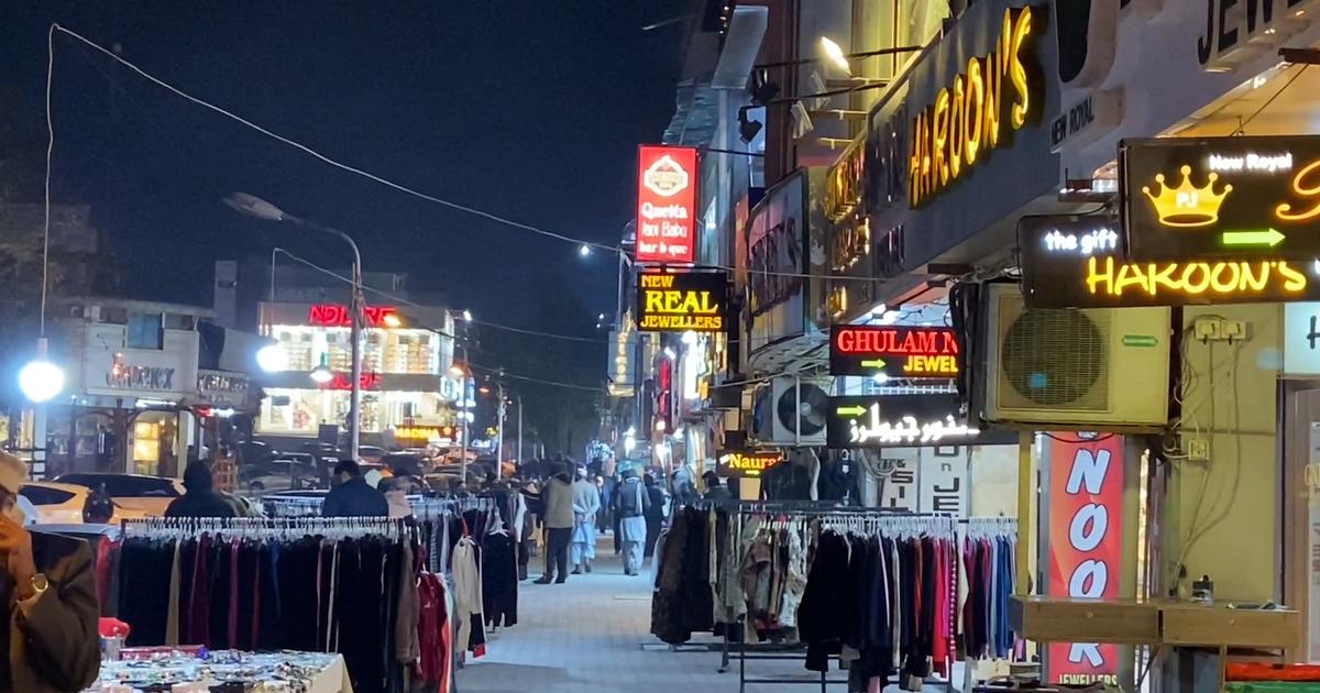 انڈپینڈنٹ اردو کی ٹیم مارکیٹ بدھ کی شب آٹھ بجے مارکیٹ پہنچی اور امید یہی تھی کہ بازار بند کرنے کے لیے دکاندار تیاری میں مصروف ہوں گے لیکن سب کچھ حکومتی فیصلے اور ہماری امیدوں کے برعکس دکھائی دیا۔