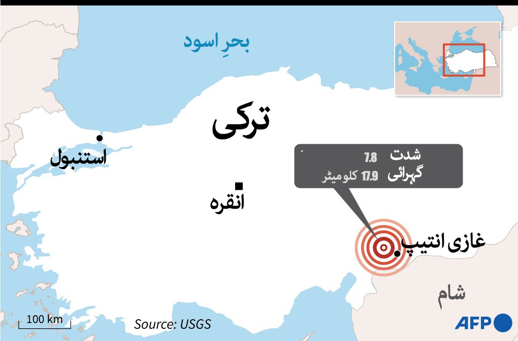 امریکی جیولوجیکل سروے کا کہنا ہے کہ پیر کو جنوب مشرقی ترکی میں زلزلے کے جھٹکے محسوس کیے گئے، جن کی شدت 7.8 تھی۔ اس زلزلے سے کئی شہروں میں عمارتیں منہدم ہوگئیں اور ہمسایہ ملک شام میں بھی نقصان ہوا۔