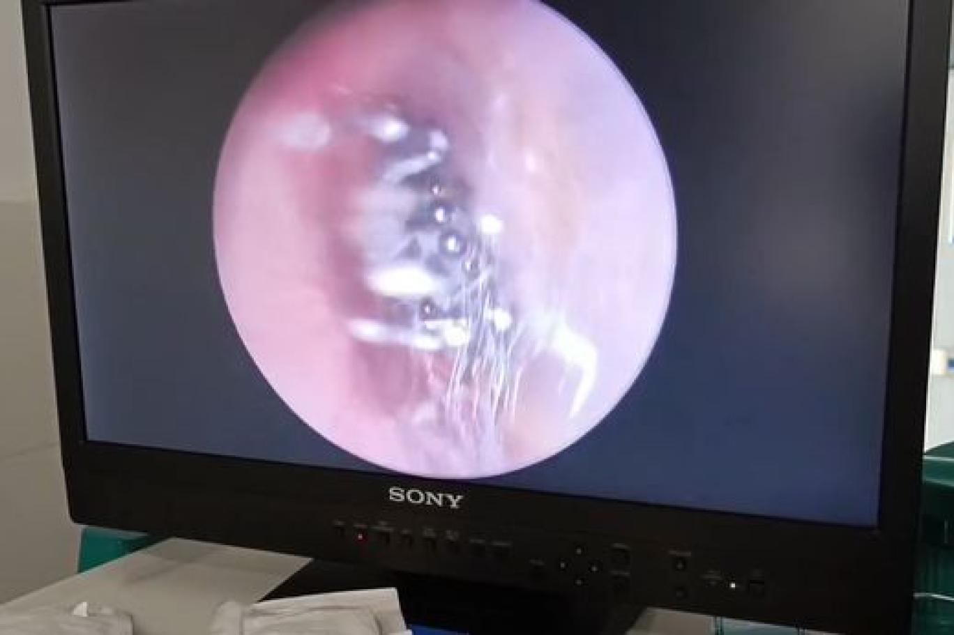 یہ ایک نازک لمحہ تھا جب ڈاکٹر نے خاتون کے کان میں ایک کیمرا داخل کیا تاکہ مکڑی سے بنے ہوئے جعلی کان کے پردے کو تلاش کیا جا سکے۔