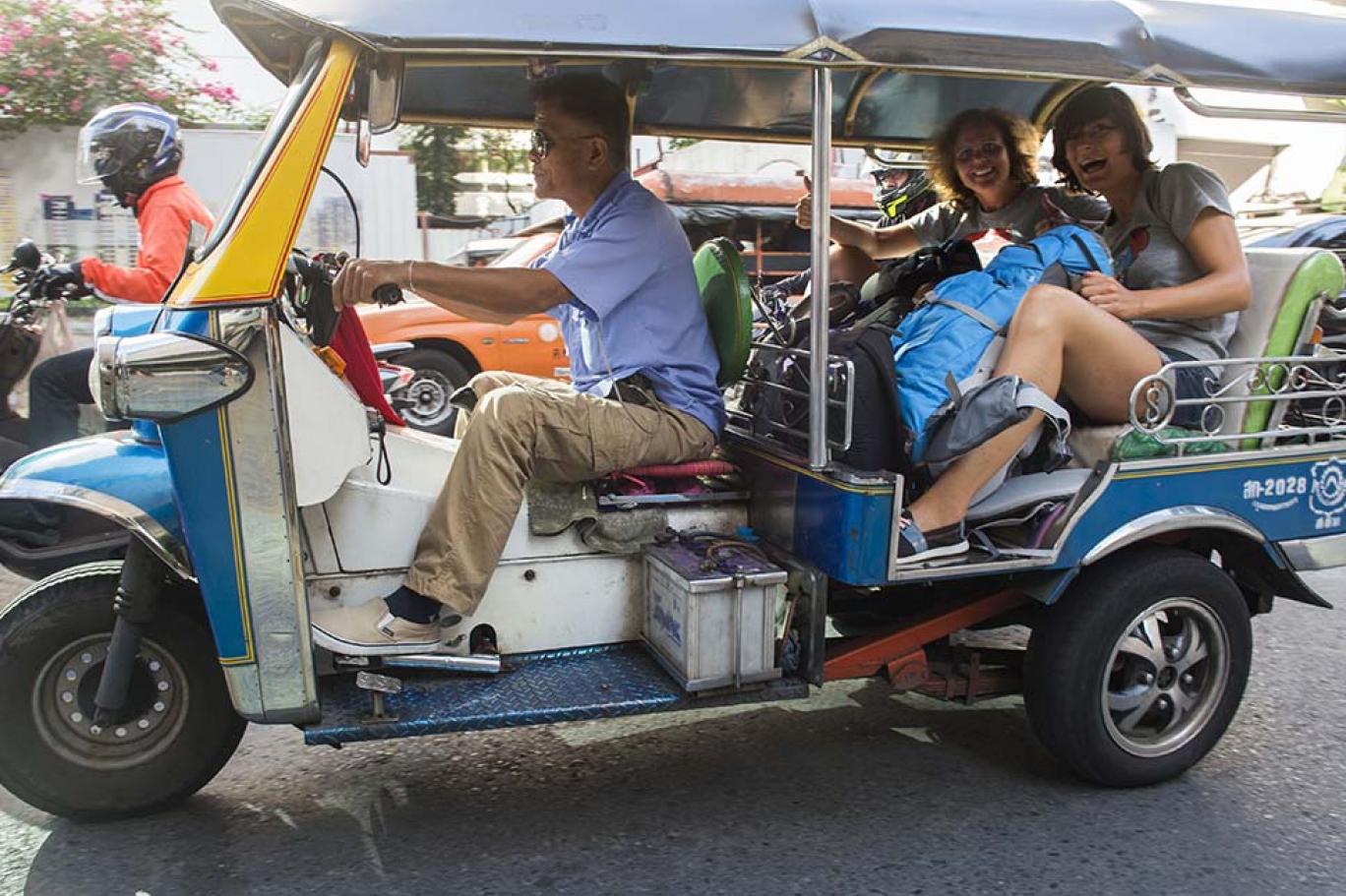 پاکستان اور انڈیا سے جب لوگ بنکاک آتے ہیں تو وہ سکھمویت کے علاقے میں رہائش اختیار کرتے ہیں، جو خریداری کے تمام اہم مراکز کے قریب ہے۔ یہاں سفر کرنے کے لیے سب وے، بس، ٹُک ٹُک اور ٹیکسی سروس دستیاب ہے۔ سب وے اور بس سستی ہیں۔ ٹُک ٹُک اور ٹیکسی قدرے مہنگی ہیں۔ ٹیکسی میٹر کے مطابق چلتی ہے جس کی کم از کم قیمت 35 بھات ہے جو پاکستانی روپے میں تقریباً دو سو روپے بنتے ہیں۔ یہاں اوبر کی طرز پر بھی ٹیکسیاں موجود ہیں لیکن وہ گریب نامی ایک ایپ کے ذریعے بلائی جا سکتی ہیں۔ اس کے علاوہ موٹر سائیکل ٹیکسی بھی موجود ہوتی ہے جو اپنے آپ میں ایک الگ تجربہ ہے۔