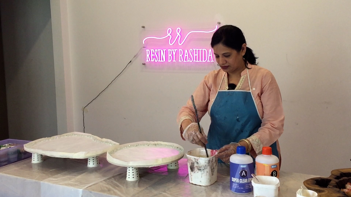 اسلام آباد کی رہائشی راشدہ ریاض مختلف کیمیکلز کے ملاپ سے منفرد فن پارے تخلیق کرتی ہیں اور اب تک 2000 سے زائد طلبہ کو ریزن آرٹ سیکھا چکی ہیں۔