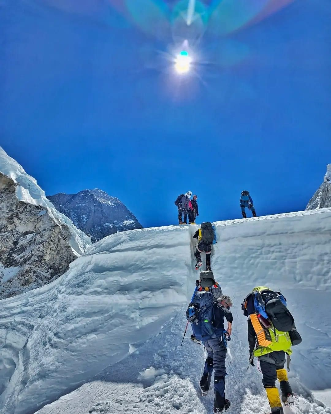 انہوں نے بتایا کہ ماؤنٹ ایورسٹ ’کھمبو آئس فال‘ کا راستہ ہے، جہاں سیڑھیاں رکھ کر راستہ پار کرنا ہوتا ہے۔