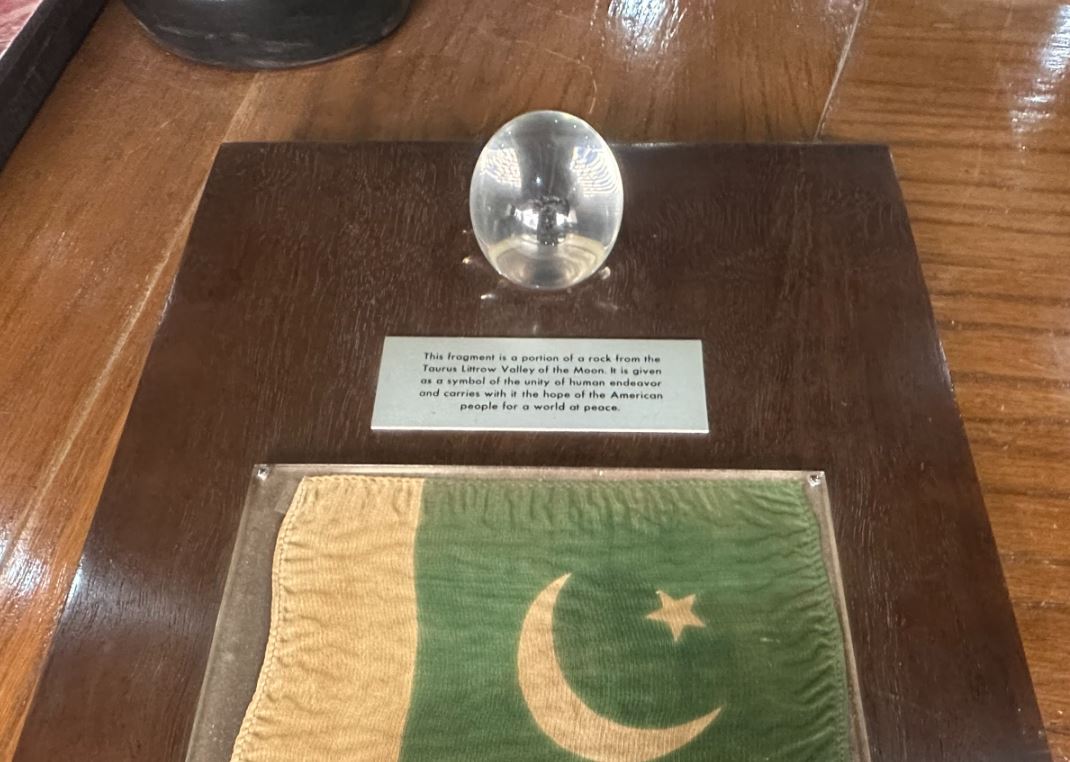 انہوں نے تعریف کی کہ دنیا کے دیگر ملکوں سے، جنہیں ایسے ٹکڑے دیے گئے تھے، تو چاند کے ٹکڑے کھو گئے ہیں یا چوری کر لیے گئے ہیں لیکن پاکستان ان چند ممالک میں سے ہے جہاں اس ٹکڑے کو سنبھال کر رکھا گیا ہے۔