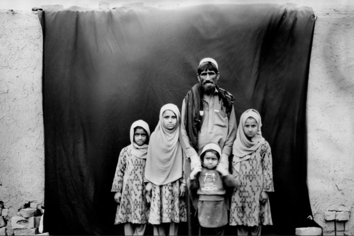 دوسری تصویروں میں اینٹوں کے بھٹے میں مزدوری کرنے والے بچے، برقعوں میں چھپی خواتین اور مسلح نوجوان شامل ہیں، جن کی آنکھوں میں شعلے دیکھے جا سکتے ہیں۔