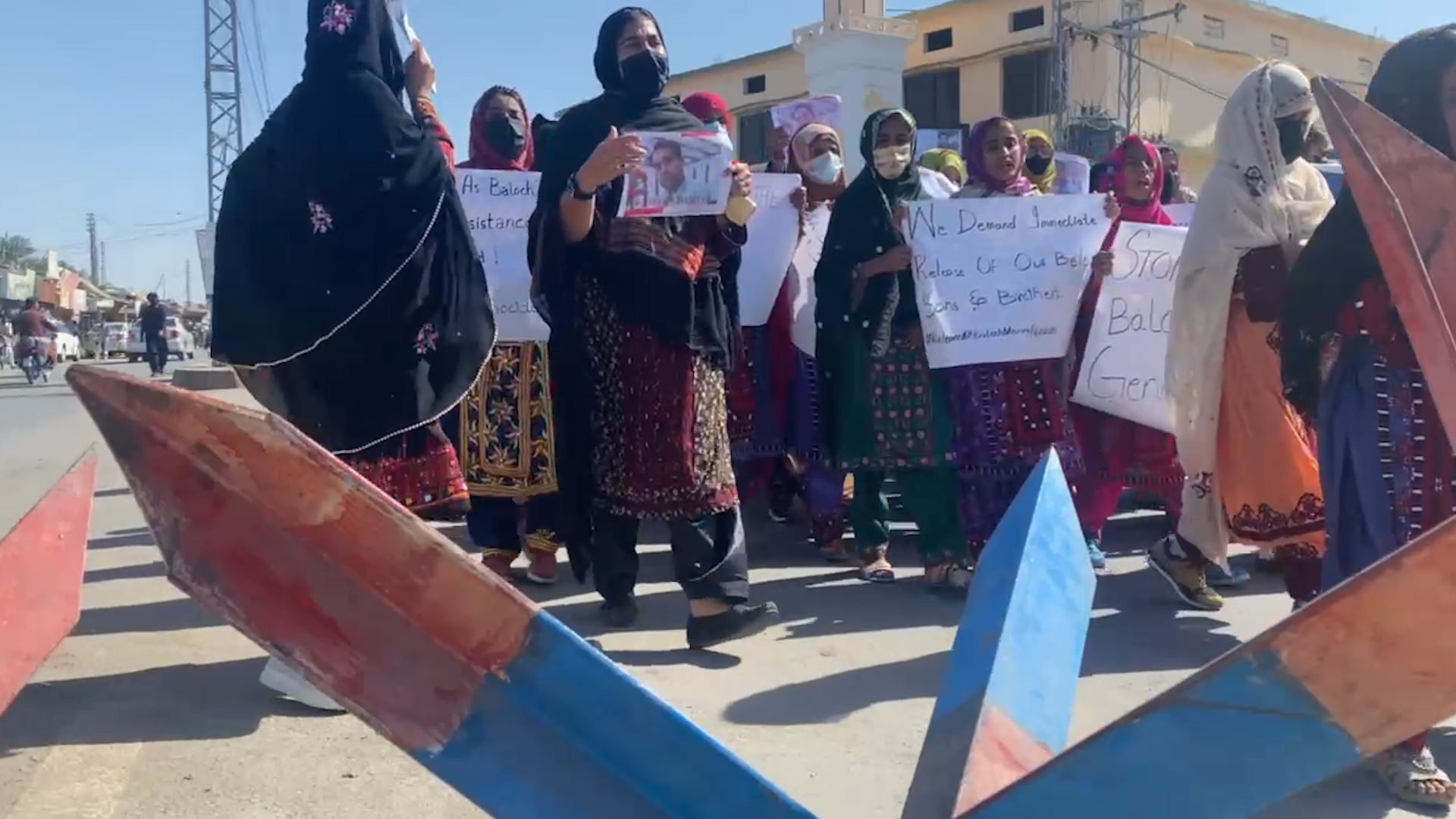 احتجاجی ریلی سے خطاب میں مظاہرین نے کہا کہ ’بلوچ قوم گذشتہ سات دہائیوں سے ایک منظم نسل کشی کا سامنا کر رہی ہے اور بلوچستان کے ہر ایک علاقے میں تقریباً ہر ایک گھر متاثر ہے۔‘