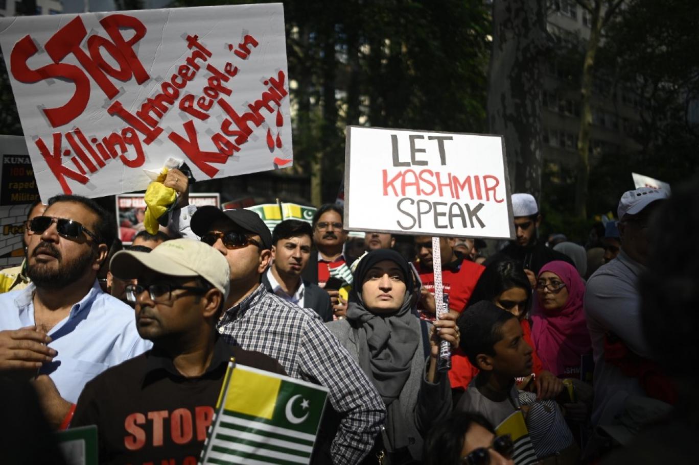 انہوں نے کہا:’اقوام متحدہ کی عمارت کے باہر اتنے بڑے پیمانے پر احتجاج کا مقصد دنیا کو بھارت کے زیر انتظام کشمیر میں ہونے والے مظالم سے آگاہ کرنا ہے۔‘