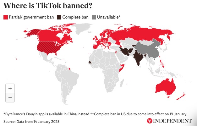19 جنوری کو ڈونلڈ ٹرمپ کے صدر بننے سے ایک دن قبل امریکہ چینی ملکیت والی اس ایپ پر مکمل پابندی عائد کرنے والا تازہ ترین ملک بننے کے لیے تیار ہے۔