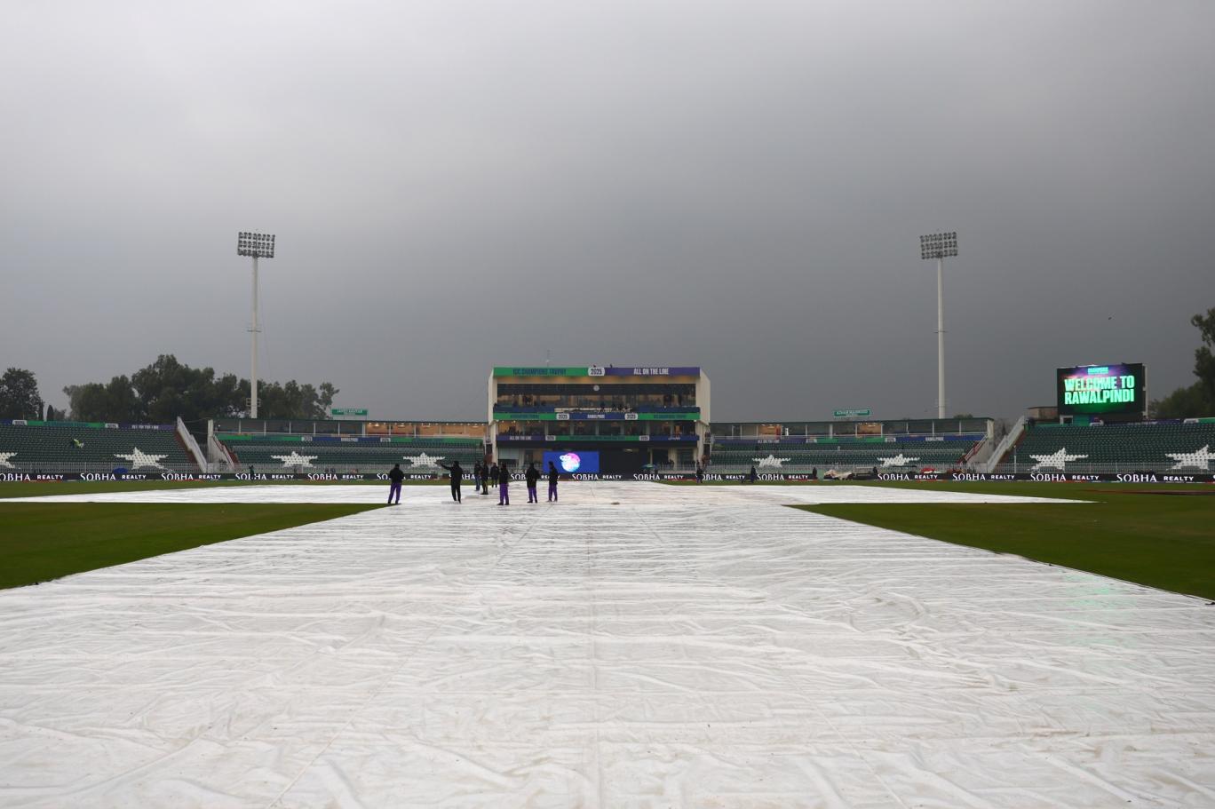 یہ میچ پاکستانی وقت کے مطابق دوپہر دو بجے شروع ہونا تھا تاہم راولپنڈی میں رات سے وقفے وقفے سے جاری بارش کے باعث گراؤنڈ میں پانی جمع تھا اور میچ کا ٹاس تک ممکن نہیں ہو پایا۔