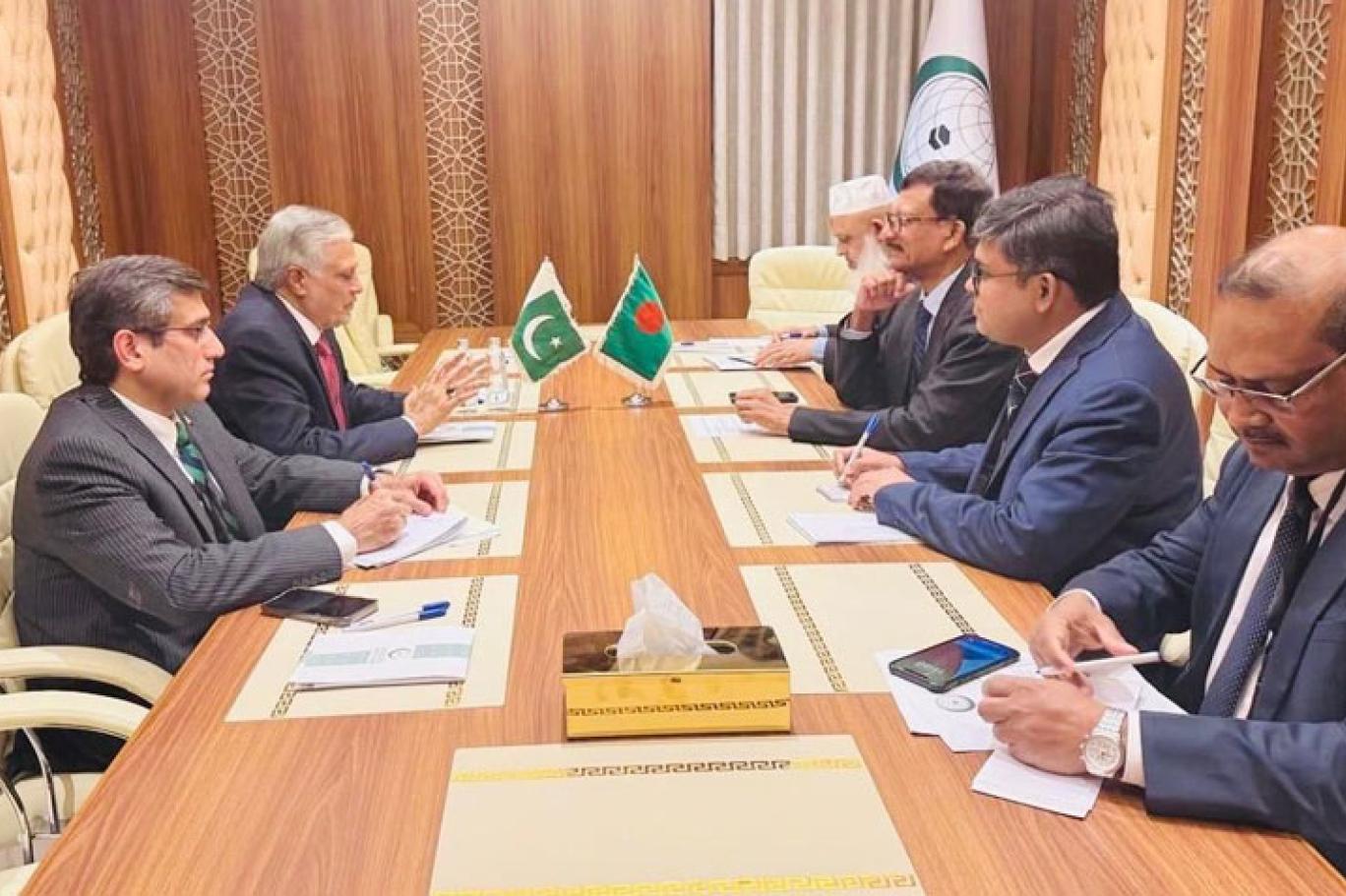 جدہ میں اسلامی تعاون تنظیم (او آئی سی) کے وزرائے خارجہ کی کونسل کے غیر معمولی اجلاس کی سائیڈ لائنز پر پاکستانی نائب وزیراعظم و وزیر خارجہ کی بنگلہ دیش کے مشیر خارجہ محمد توحید حسین سے ملاقات میں پاکستان کی طرف سے تجارت اور دونوں ملکوں کی عوام کے درمیان رابطوں کو بڑھانے کی خواہش کا اظہار کیا گیا۔