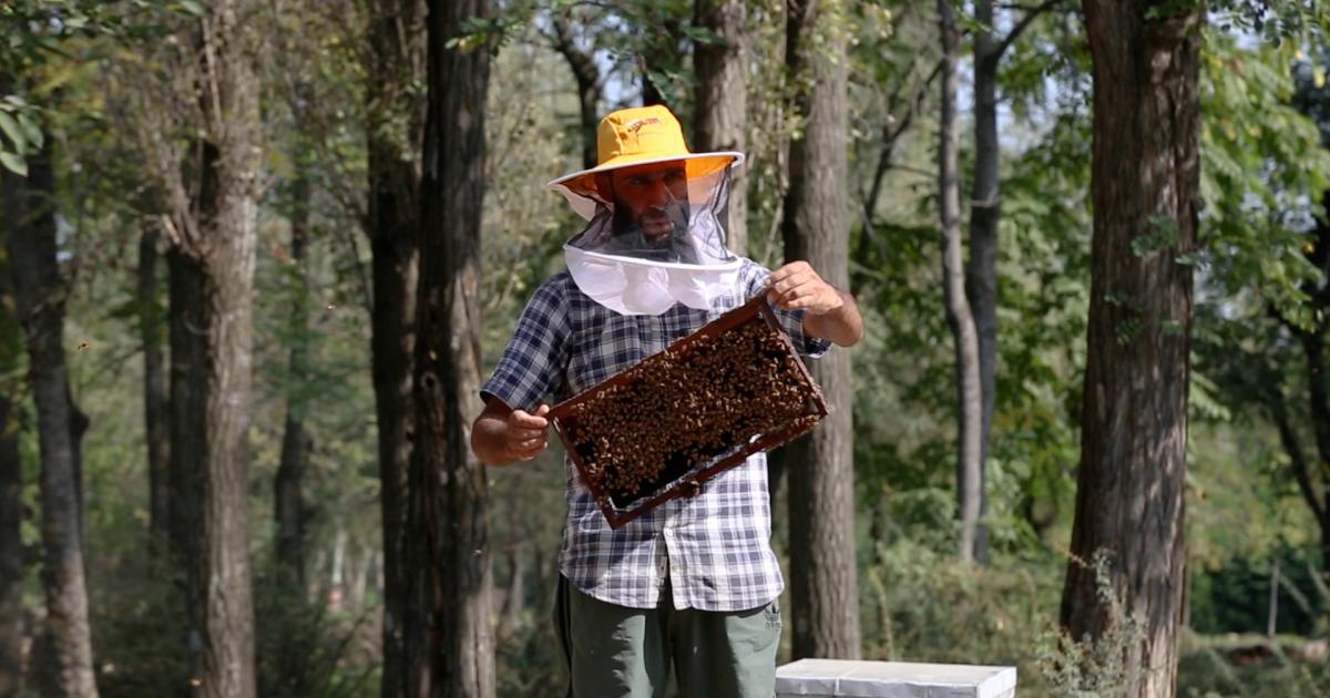 نرم گفتار کسان مشتاق نے 2010 میں اپنے صحن میں صرف دس ڈبوں سے شہد کے کاروبار کا آغاز کیا تھا۔