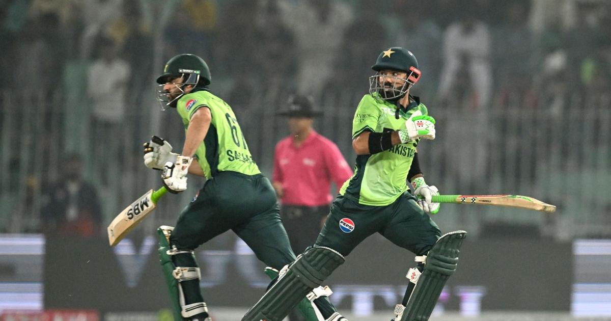 فخر زمان 45 اور بابر اعظم صرف سات رنز ہی بنا سکے۔ ان کے بعد سلمان علی آغا اور محمد رضوان نے عمدہ شراکت داری قائم کی اور ٹیم کو مشکل سے نکالا۔
