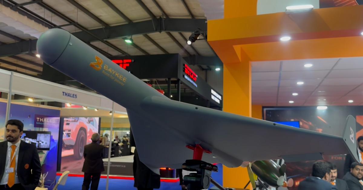ایکسپو میں پاکستانی ڈرون بنانے والی کمپنی کے ترجمان نے بتایا کہ ’پاکستان میں پہلی مرتبہ متعارف کروایا گیا ’سرفروش‘ کاماکازی ڈرون مستقبل کی جنگوں میں ایک انقلاب ثابت ہونے والا ہے۔