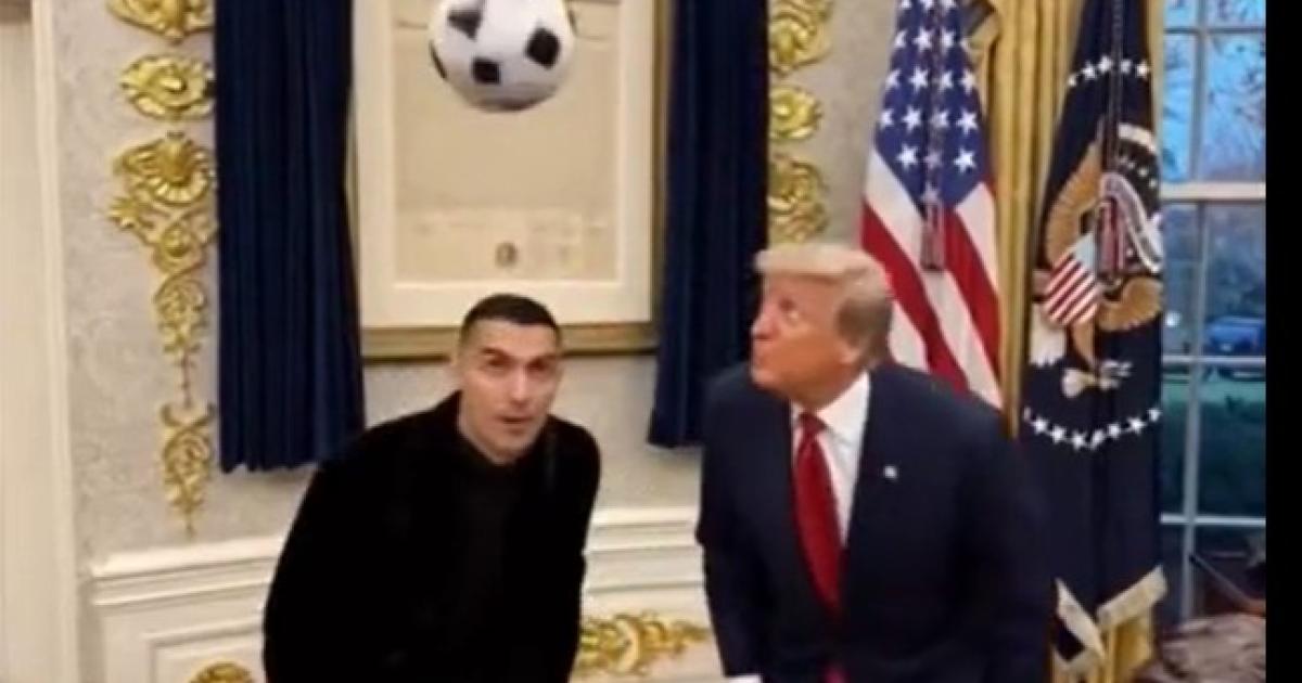 ویڈیو میں دکھایا گیا ہے کہ ٹرمپ وائٹ ہاؤس میں النصر کے کپتان کے ساتھ فٹ بال کھیل رہے ہیں۔
