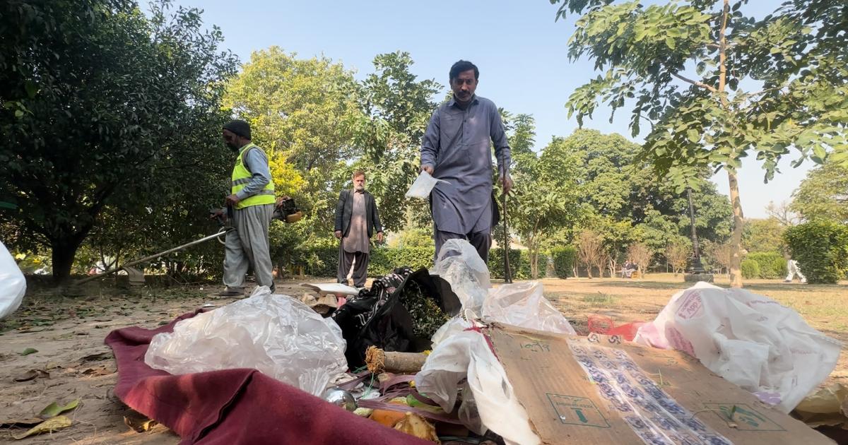افغانوں خاندانوں کے جانے کے بعد پارک میں کیپیٹل ڈویلپمنٹ اتھارٹی (سی ڈی اے) کا عملہ صفائی کر رہا ہے۔