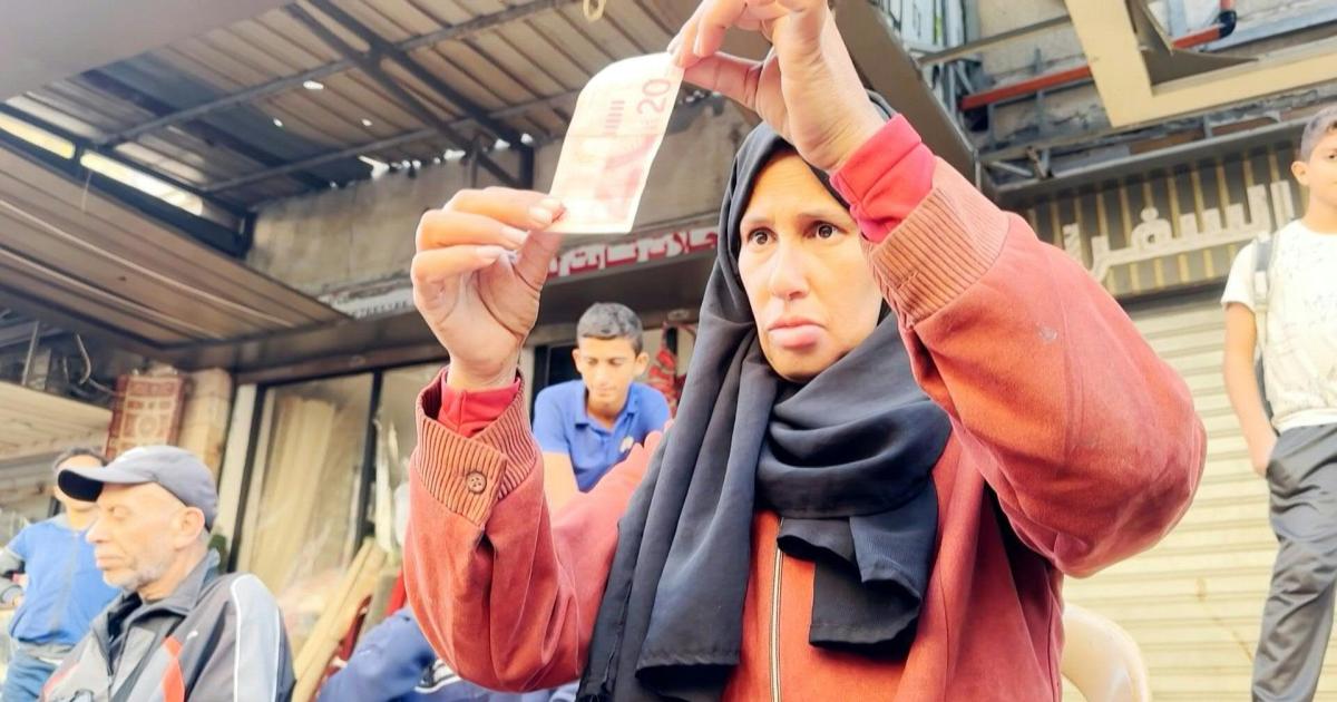 اکتوبر 2023 سے اسرائیلی حملوں کے دوران غزہ کے زیادہ تر وقت محاصرے میں رہنے کی وجہ سے علاقے میں کرنسی نوٹوں سمیت بنیادی اشیا کی قلت ہو چکی ہے اور بینکوں کو نئے نوٹ فراہم نہیں کیے گئے۔