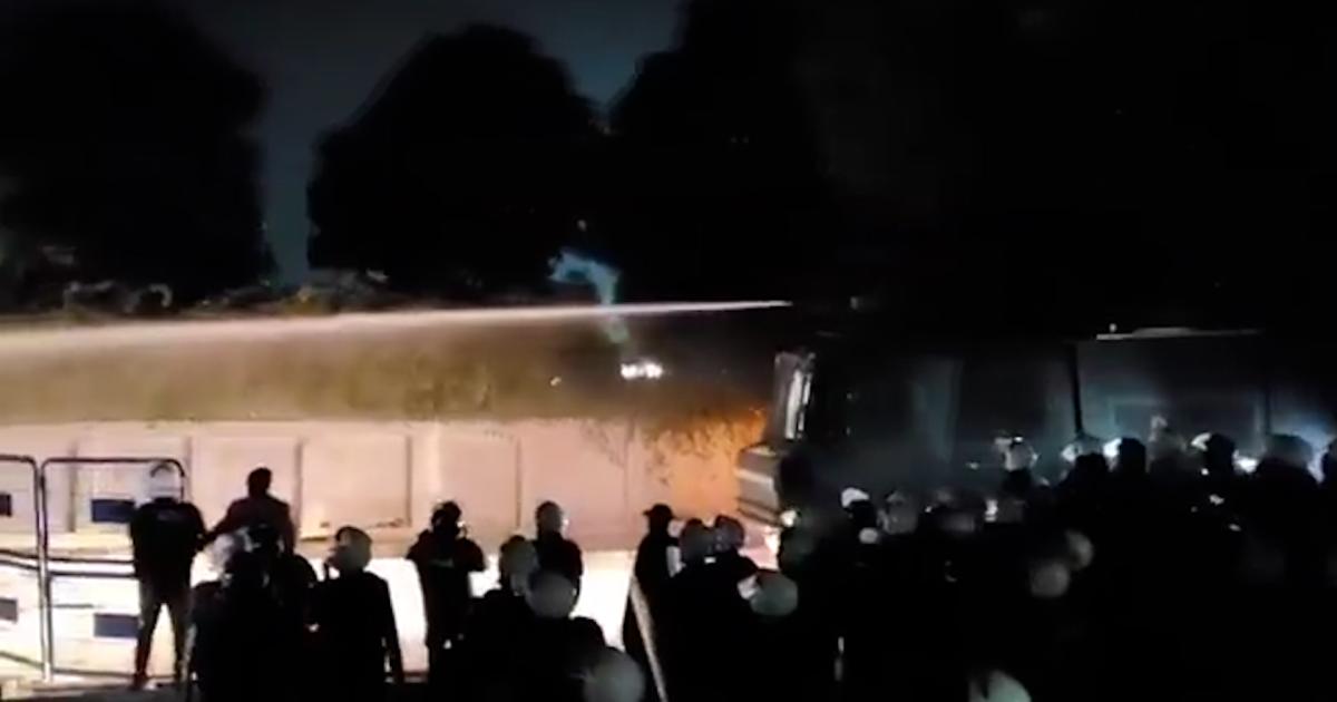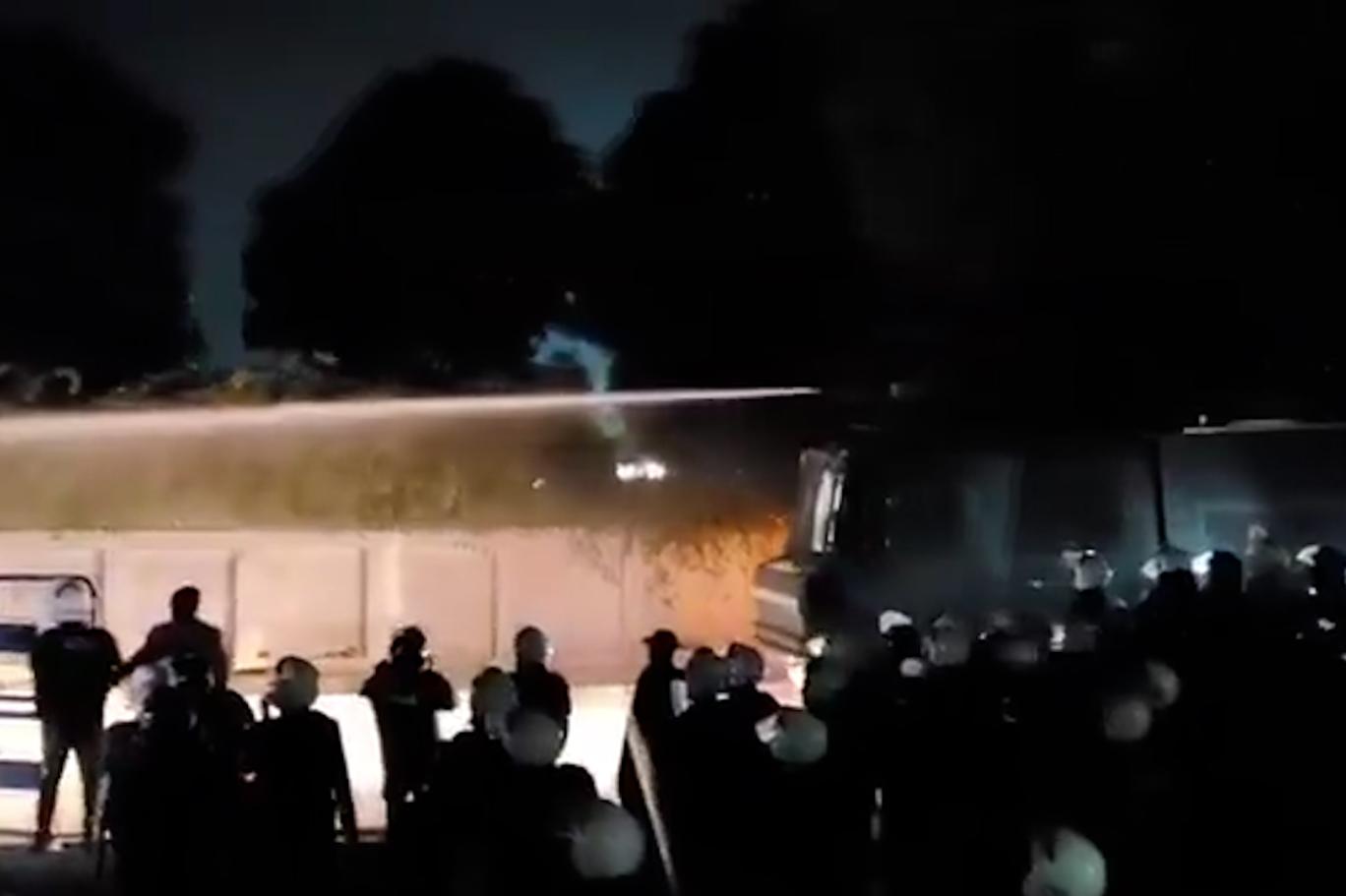 بدھ کو علی الصبح مظاہرین کو منتشر کرنے کے لیے دوبارہ واٹر کینن کے ذریعے پانی پھینکا گیا۔