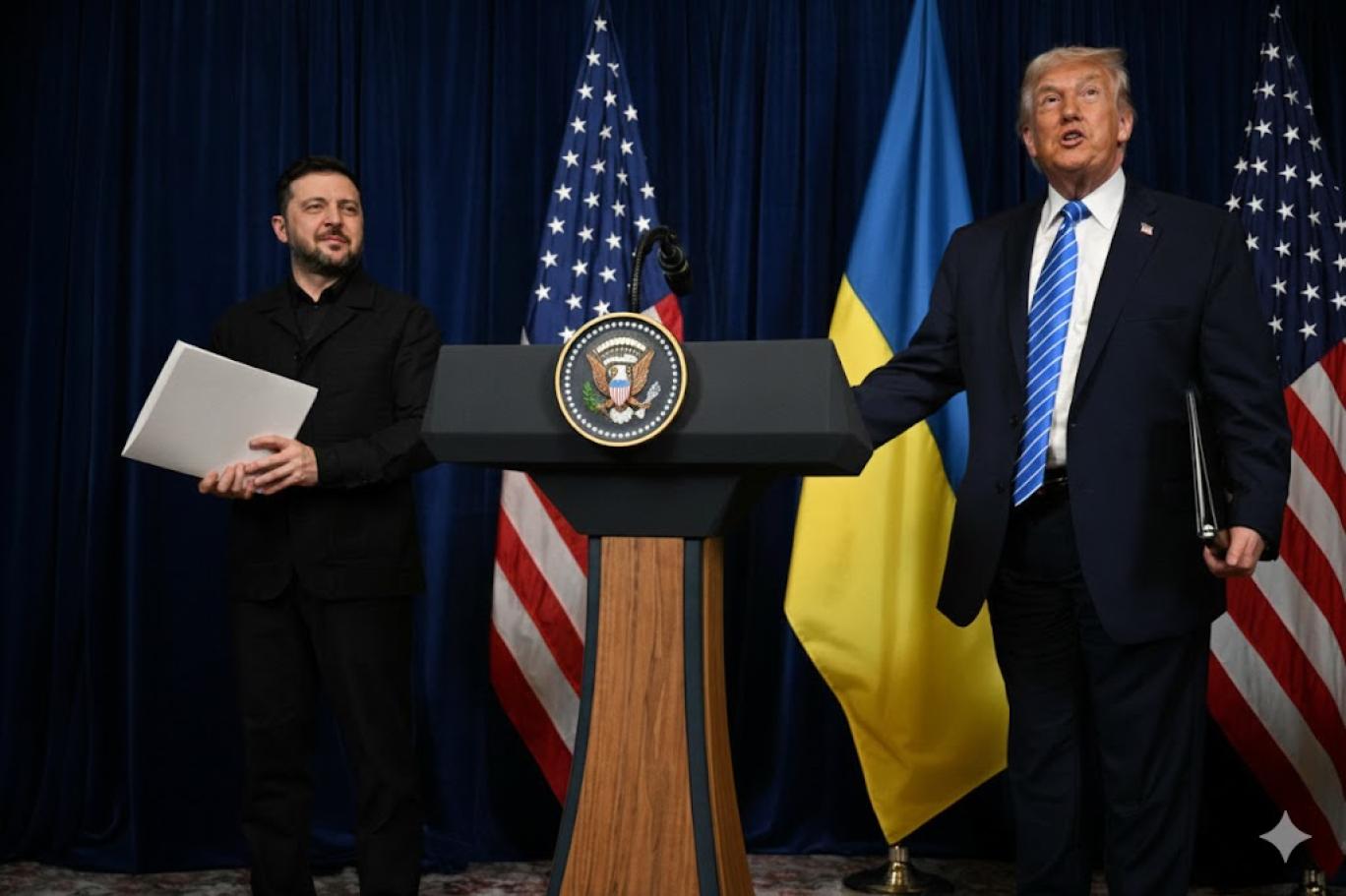 اتوار کی دوپہر فلوریڈا میں ٹرمپ کے مار اے لاگو ریزورٹ میں ملاقات کے بعد دونوں رہنماؤں نے مشترکہ نیوز کانفرنس میں گفتگو کی۔ دونوں رہنماؤں کے مطابق امن مذاکرات کے دو سب سے پیچیدہ معاملات پر پیش رفت ہوئی ہے، جن میں یوکرین کے لیے سکیورٹی ضمانتیں اور مشرقی یوکرین کے دونبیس کے علاقے کی تقسیم شامل ہے، جس پر روس قبضہ حاصل کرنے کی کوشش کرتا رہا ہے۔