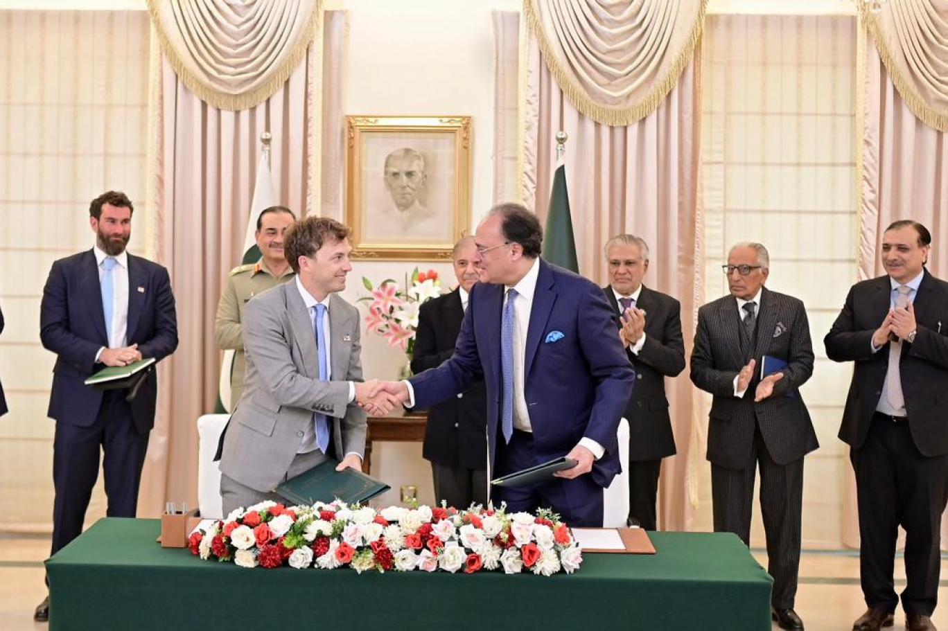 وزیر خزانہ محمد اورنگزیب اور سی ای او ورلڈ لبرٹی فنانشل زچری وٹکوف نے مفاہمتی یادداشت پر دستخط کیے۔