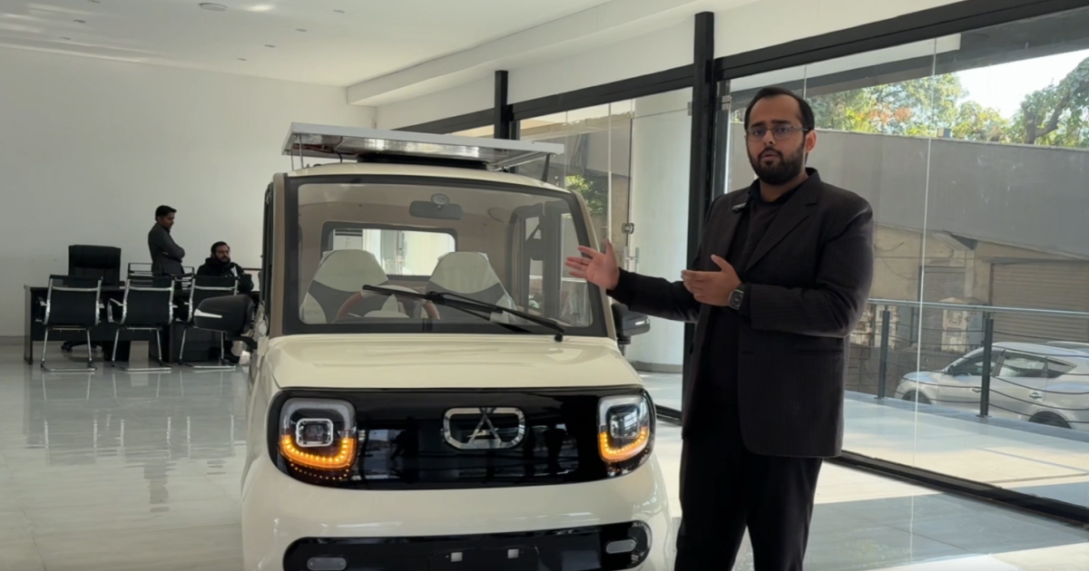 عماز فاروقی کے مطابق: ’الیکٹرا پاکستان کی پہلی الیکٹرک سولر گاڑی ہے، جس کی قیمت 12 لاکھ 95 ہزار روپے مقرر کی گئی ہے۔‘