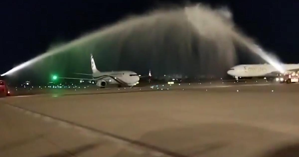 پاکستان ایئرپورٹس اتھارٹی کے مطابق کراچی کے جناح انٹرنیشنل ایئرپورٹ پر جمعرات کی شب 11 بجے کے قریب ڈھاکہ سے آنے والی افتتاحی پرواز کو واٹر سیلوٹ دیا گیا اور ایئرپورٹ پر اعلیٰ سطح کے استقبالیہ تقریب کے ساتھ خوش آمدید کہا گیا۔