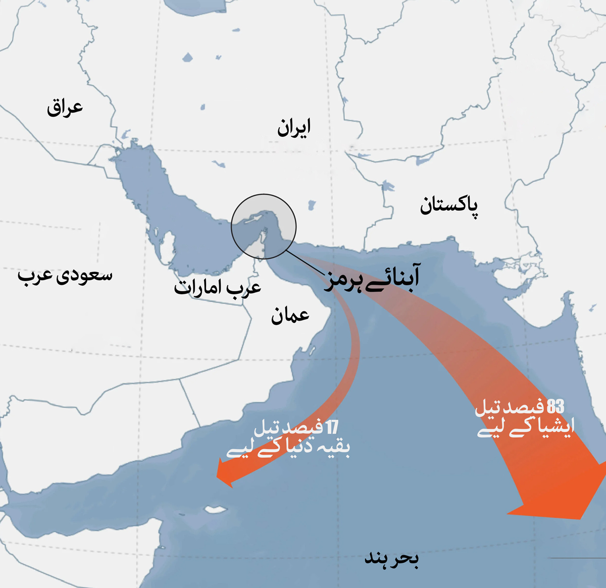 ایک اور اہم بات یہ ہے کہ آبنائے ہرمز کی بندش سے سب سے زیادہ نقصان خود ایران کو ہو گا کہ کیوں کہ یہاں سے گزرنے والے 83 فیصد تیل کا خریدار ایشیا ہے، صرف 7.5 فیصد یورپ کو جاتا ہے۔ خود ایرانی تیل اسی راستے سے گزرتا ہے، جس سے آنے والی آمدن کی موجودہ حالات میں اسے سخت ضرورت ہے۔
