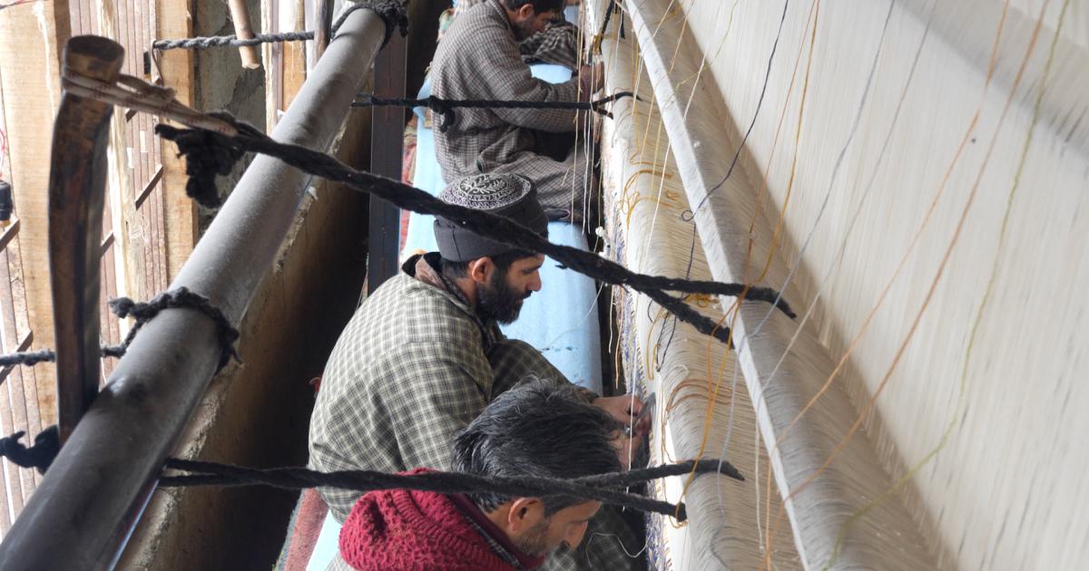انڈیا کے زیرانتظام کشمیر میں سری نگر سے 30 کلومیٹر دور واقع گاؤں میں کم ازکم 15 ہنرمندوں کی ٹیم ہاتھ سے دنیا کا دوسرا سب سے بڑا ریشمی قالین تیار کرنے میں مصروف ہے۔