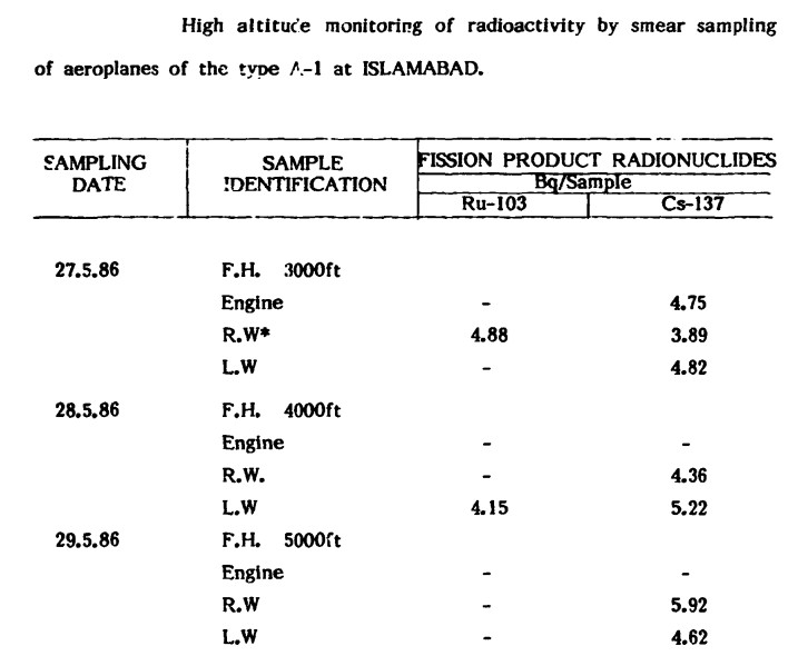 اس بات کا جائزہ لینے اسلام آباد کے قریب نیلور میں واقع پاکستان انسٹی ٹیوٹ آف نیوکلیئر سائنس اینڈ ٹیکنالوجی (PINSTECH) نے، جو پاکستان اٹامک انرجی کمیشن کی تحقیق کی قومی لیبارٹری ہے، چرنوبل سے نکلنے والی تازہ فشن کی نگرانی میں اضافہ کیا۔