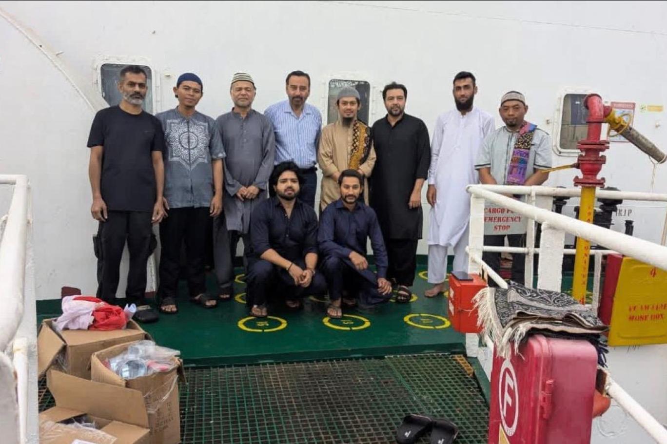 جہاز کے عملے کے ارکان میں سے 10 پاکستانی، چار انڈونیشین، ایک میانمار، ایک انڈیا اور ایک سری لنکا کے شہری ہیں۔
