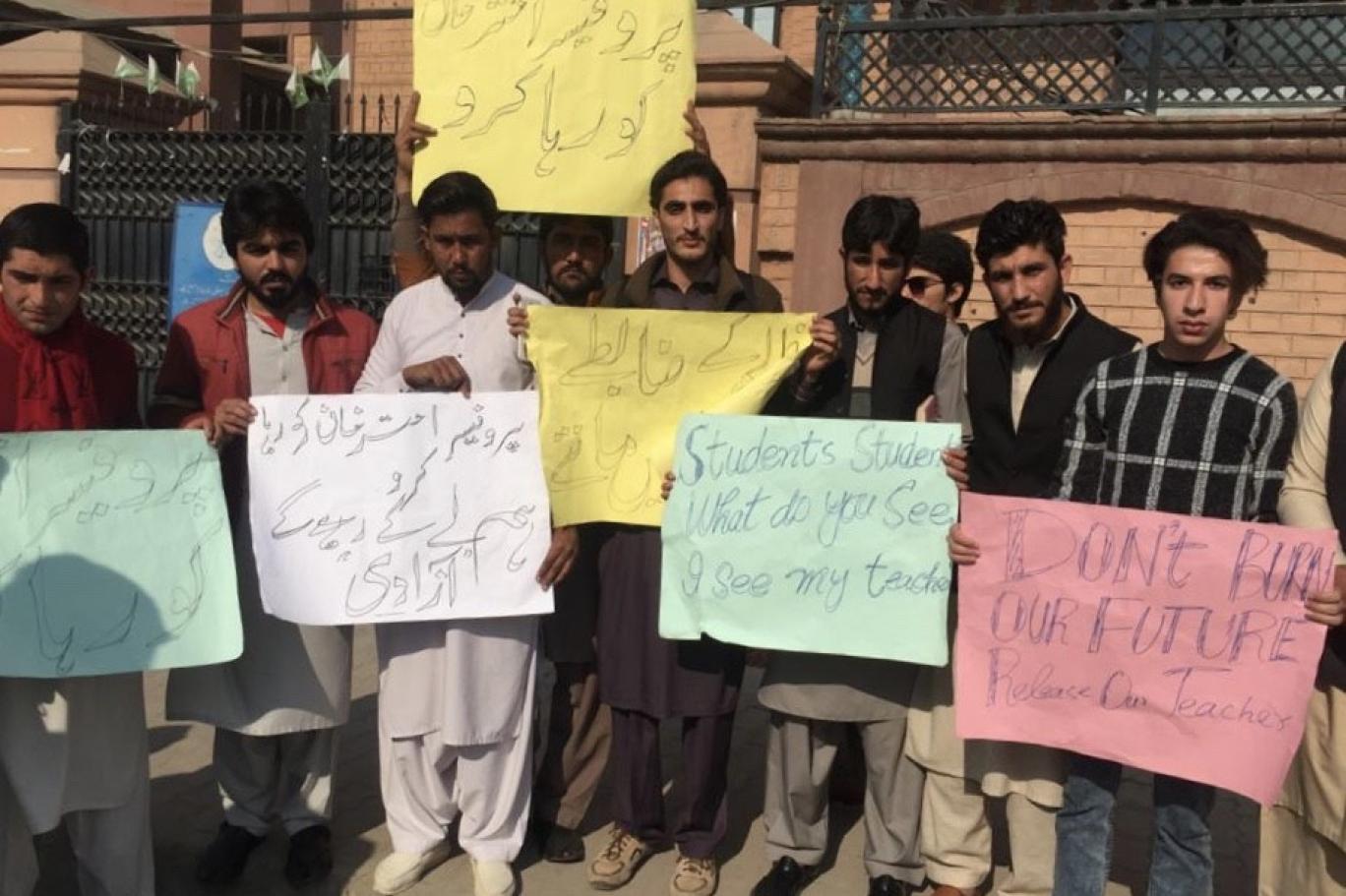 مردان پریس کلب کے سامنے پولیٹیکل سائنس ڈیپارٹمنٹ کے طالب علموں کا مطالبہ تھا کہ ان کےاستاد اختر خان کی گرفتاری کی وجہ سے ان کی پڑھائی متاثرہورہی ہے لہذا انہیں جلد از جلد رہا کیا جائے۔ احتجاجی طلبہ کا کہنا تھا کہ پولیٹیکل سائنس ڈیپارٹمنٹ کے لیکچرر اختر خان بے گناہ ہیں اور وہ کسی قسم کے منافرت پھیلانے میں ملوث نہیں جب کہ اظہار رائے کی آزادی ہر شہری کا حق ہے۔