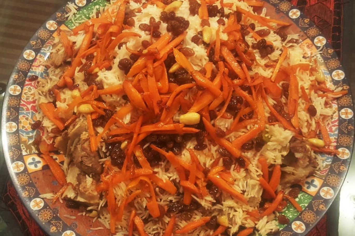 اس پلاؤ میں کشمش اور گاجر کے علاوہ ایک مخصوص طریقے سے نرم کیا گیا گوشت ڈالا جاتا تھا، جس سے اس پلاؤ کا ذائقہ دوبالا ہو جاتا تھا۔ افغانستان میں چونکہ زمین پر توشک اور تکیہ لگا کر بیٹھنے کا رواج زیادہ ہے، لہٰذا ان کے تمام تر ریستورانوں میں زمین پر دریاں بچھا کر کھانے پیش کیے جاتے ہیں۔