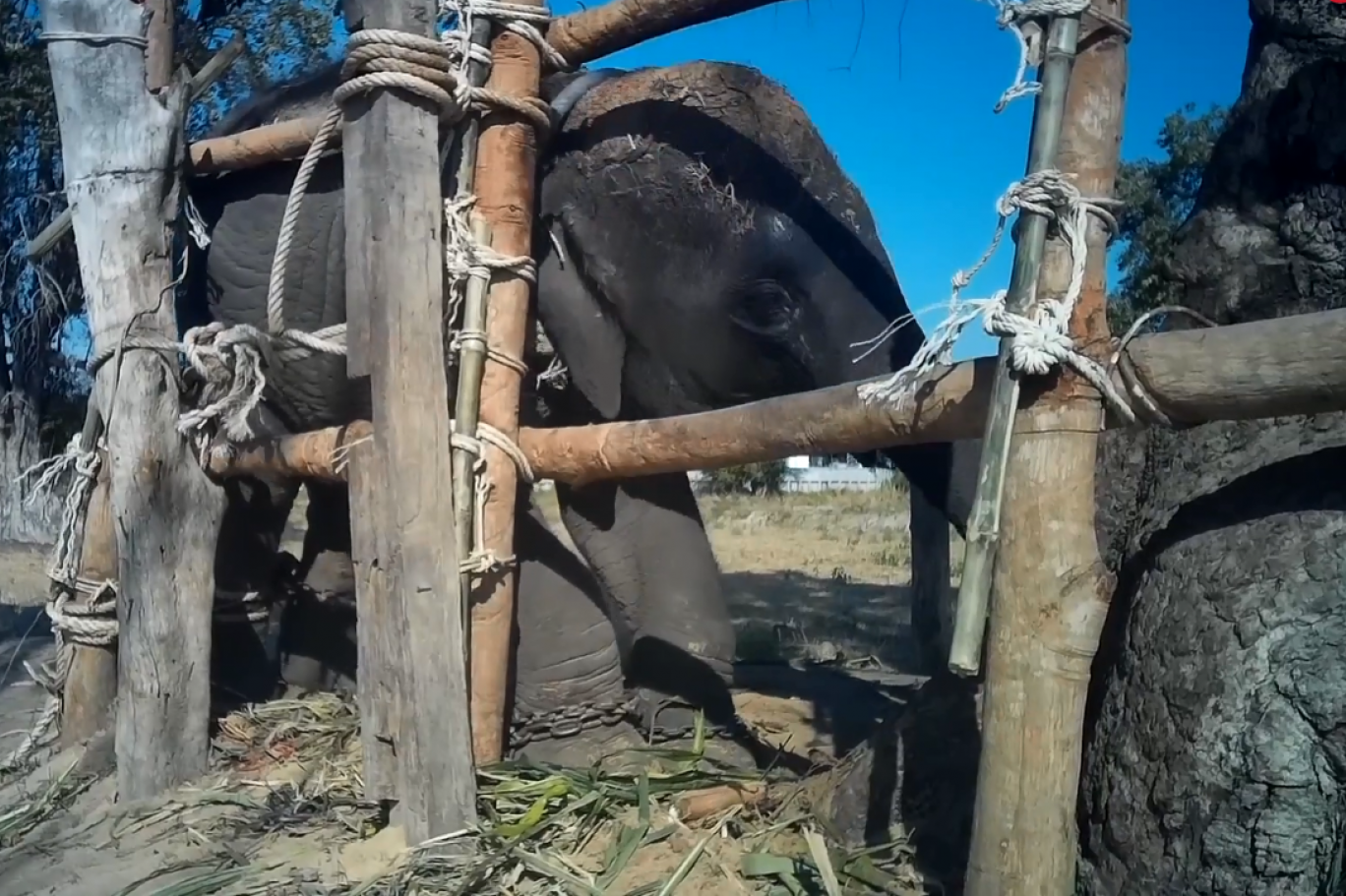اس ویڈیو میں دیکھا جا سکتا ہے کہ تربیت کے دوران ہاتھی کے بچے کو زنجیروں سے ایک تنگ جگہ پر کئی دن تک باندھ کر یہ سکھایا جا رہا ہے کہ وہ سیاحوں کو لطف اندوز کرنے کے لیے خود کو اس ماحول کے مطابق ڈھال لیں۔