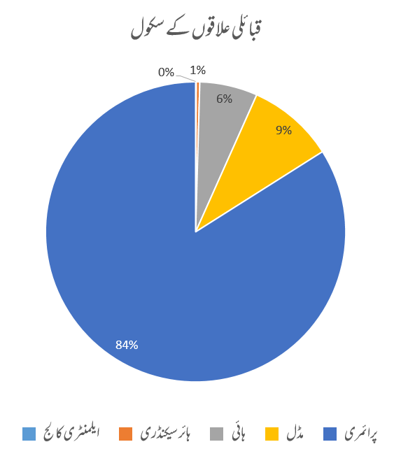 سابق قبائلی علاقوں میں کُل 5 ہزار 890 سرکاری تعلیمی ادارے ہیں جن میں ڈگری کالج شامل نہیں، ان میں سے 5 ہزار 573 تعلیمی ادارے کھلے ہیں جبکہ 360 بند پڑے ہیں۔