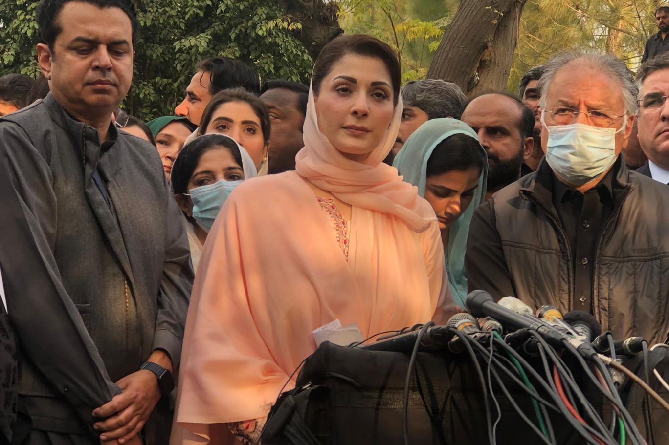 پاکستان مسلم لیگ نواز کی نائب صدر مریم نواز اور ان کے شوہر کیپٹن محمد صفدر دوسرے مسلم لیگی رہنماؤں کے ساتھ کمرہ عدالت میں موجود تھے۔