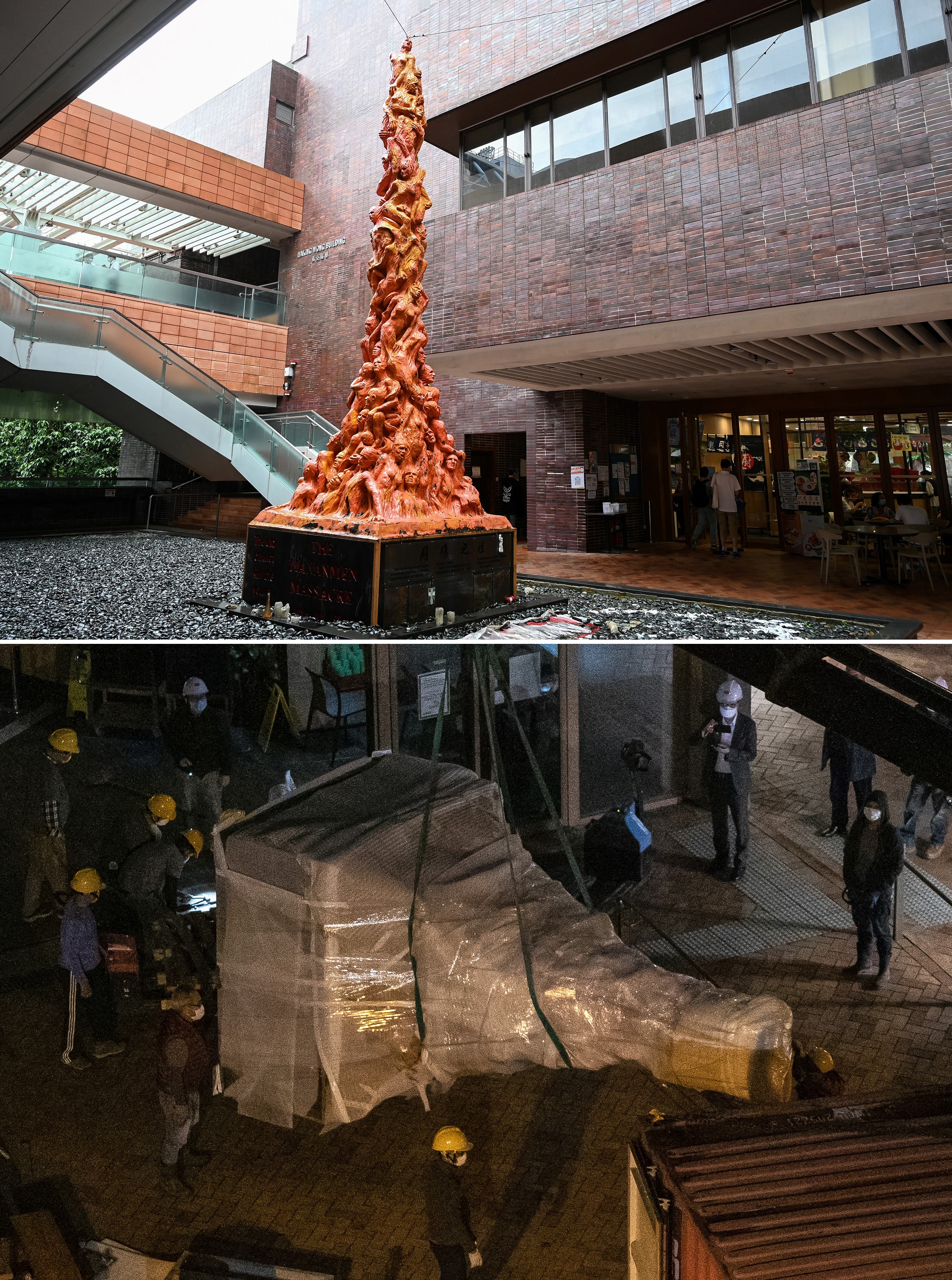 خبر رساں ادارے روئٹرز کے مطابق اکتوبر میں یونیورسٹی نے اس مجسمے کے سامنے شمعیں روشن کرنے والے منتظمین (ہانگ کانگ میں چین کی محب وطن جمہوری تحریکوں کے حمایتی الائنس) کو آگاہ کیا تھا کہ ’حالیہ خطرے کی تشخیص اور قانونی مشورے‘ کے بعد اس مجسمے کو ہٹانا پڑے گا۔
