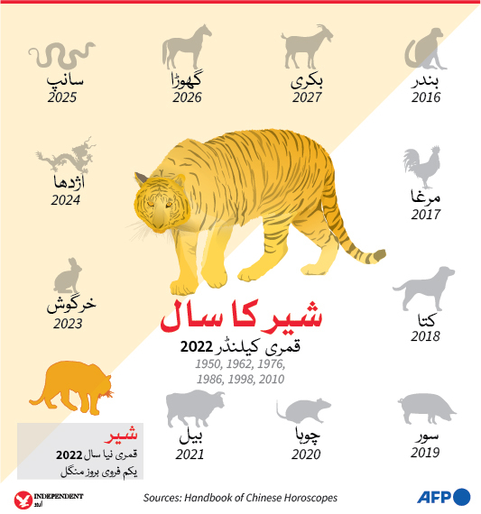 قمری سالوں کو چینی برج کے بارہ جانوروں کی مناسبت سے جانا جاتا ہے۔ ہر سال ایک جانور کا سال ہوتا ہے۔ یہ چیتے کا سال ہے۔ پچھلا سال بیل کا تھا۔