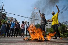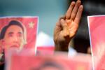 ینگون کی آنسین جیل سے رہا کیے گئے 600 سے زائد افراد میں زیادہ تعداد نوجوانوں کی تھی، جن میں سے کچھ احتجاجی تحریک کے دوران اختیار کیے جانے والے تین انگلیوں کے اشارے سے اپنی خوشی کا اظہار کرتے نظر آرہے تھے۔