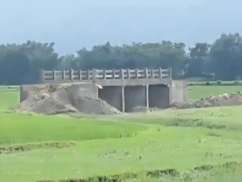 انڈیا: کھیت کے بیچوں بیچ بغیر سڑک کے پل تعمیر، رہائشی حیران