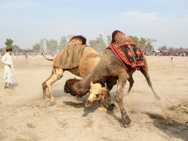 میگزین ثقافت یا ظلم؟ پاکستان میں پابندی کے باوجود اونٹوں کی لڑائی پاکستان میں اونٹوں کی لڑائی پر پابندی ہے لیکن اس کے باوجود ہزاروں لوگ لیہ میں ہونے والے مقابلے دیکھتے ہیں۔
