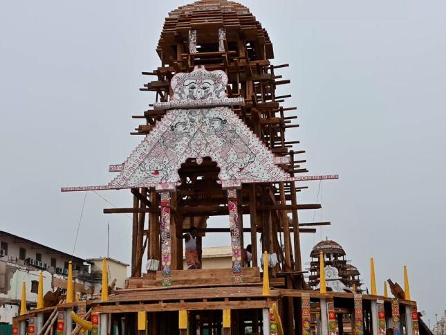 ایشیا بھارت:تہوار کے لیے قد آور رتھوں کی تیاری مقامی افراد کے مطابق جگناتھ مندر کے موروثی خادم اور مخصوص خاندان کے افراد مشینوں کی مدد کے بغیر مہینوں کی مشقت سے تین قد آور رتھ تیار کرتے ہیں، جن پر دیوتا براجمان ہوتے ہیں اور ایک خاص دن پر ان کی سواری نکلتی ہے۔