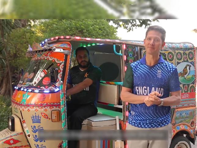 دونوں ٹیموں کے مابین پہلے ٹیسٹ میچ کے آغاز سے قبل پاکستان میں تعینات برطانوی ہائی کمشنر کرسچن ٹرنر نے رکشے کے سامنے بنائی گئی ایک ویڈیو ٹوئٹر پر شیئر کی، جس پر شائقین کے دلچسپ تبصرے سامنے آ رہے ہیں۔