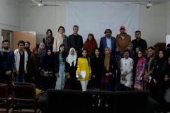 جامعہ کراچی کے شعبہ کریمنالوجی میں منعقدہ نمائش میں طلبہ نے کرائم سین بنا کر متعلقہ کردار ادا کیے۔