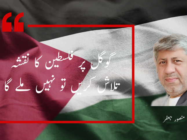زاویہ منصور جعفر گوگل: عالمی گاؤں کا متعصب نمبردار معروف عالمی سرچ انجن کا سائبر سپیس سے فلسطینی نقشہ نہ دکھانے کا اقدام فلسطینیوں کی زمین چوری کے لیے مشتہر ’ڈیل آف دی سنچری‘ کا حصہ معلوم ہوتا ہے۔